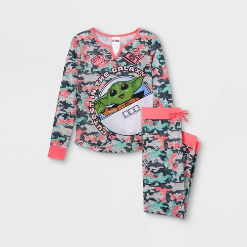 Girls Star Wars Baby Yoda Halloween 2pc Pajama Set Gray Black White Target